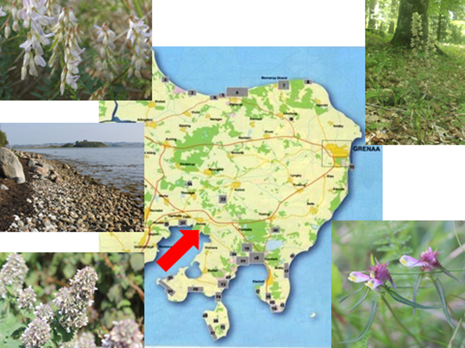 Jyllands østvendte ’næse’ Djursland har et areal på ca. 1419 km² og cirka 80.000 indbyggere. Djursland er kontrasternes halvø spændende fra det istidsformede morænebakkeland og skovområder på plastisk ler i syd til mere flade, sandede jorde i nord og det blottede kalkområde ved Glatved, fra den rette eksponerede kystlinje med klitter og stejle klinter i nord og øst til den beskyttede, bugtede kystlinje i syd med bugter og vige. Formålet med højsommerekskursionen er at præsentere typiske djurslandske naturtyper, Nationalpark Mols Bjerge, Molslaboratoriet med vildheste, den anvendte side af botanikken samt et udvalg af halvøens karakteristiske arter som Lav Skov-Vikke. Tætblomstret Hullæbe, Kantet Kohvede, Knopnellike og Kostnellike samt de levende fortidsminder Bulmeurt, Hjertespand og Katteurt.