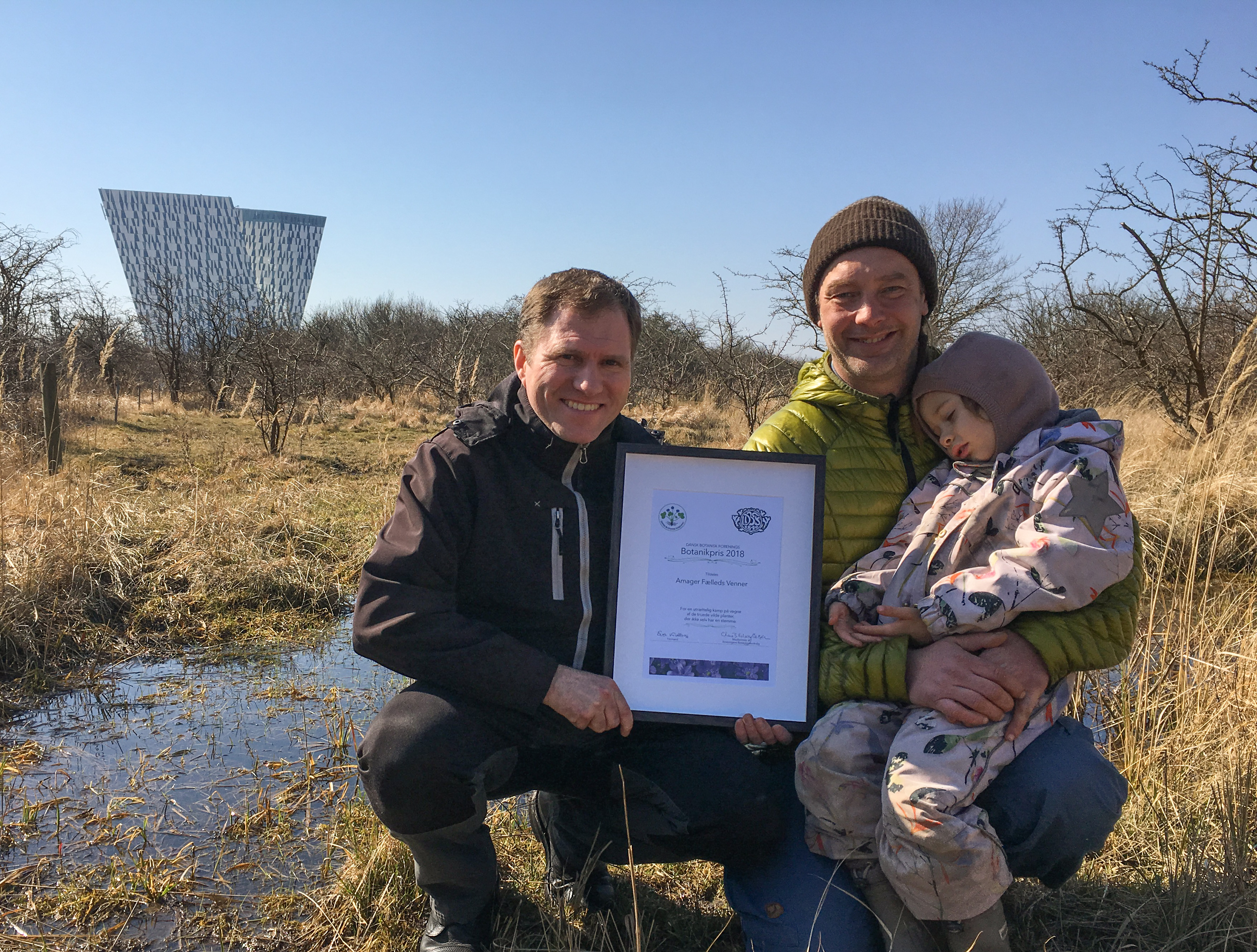 – får botanikprisen 2018 for deres utrættelige kamp mod byggeri i uerstattelig natur, og for at tale på vegne af de truede vilde planter, der ikke selv har en stemme. Prisen er på 10.000 kroner. Siden vedtagelsen af Ørestadsloven i 90’erne har der været planlagt byggeri i det sydøstlige hjørne af Amager Fælled, som er den sidste rest af de engang så vidtstrakte strandenge på Amagers vestkyst. Denne sidste rest er kendt for de store forekomster af sjældne arter, særligt planter. Da byggeplanerne i 2016 pludseligt blev fremrykket gik borgergruppen Amager Fælleds Venner aktivt ind i kampen for naturen. De oprettede en facebookgruppe, som hurtigt voksede sig meget stor, og gennem deres insisterende fokus på de sjældne arter lykkedes det at få sagen helt op på den politiske dagsorden, så overborgmester Frank Jensen til sidst måtte indse, at der ikke er stemmer i at bygge på truede arter.