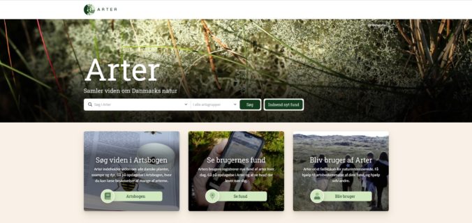 Hjemmesiden Arter har siden maj 2020 været ude i en testversion og samler viden om de arter, der lever i vores natur. Der er stadig behov for brugere, der vil bruge tid på at vurdere, hvordan den fungerer. Data om fund stilles gratis til rådighed for forskere, naturforvaltere, virksomheder og alle interesserede borgere i Danmark.
